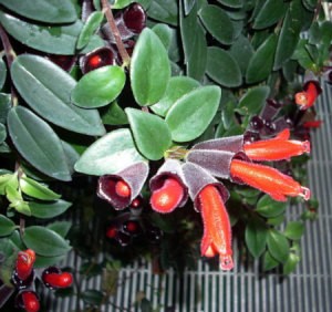 For comparison, the photo below is a lipstick plant. The blossom comes from a long casing....much like a lipstick tube. The blossoms are also in clusters.