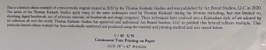 It is always confusing when trying to provide an honest answer to a question about a Thomas Kinkade painting because there are so many versions of the same picture and you just have to know exactly what the COA states and nothing else.