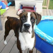 Sunshine (Boxer)Sunshine is 11 months old and is a Boxer. We saw a sign advertising Boxer puppies on our way home from warehouse club shopping last November. Sunshine was part of an unwanted litter.