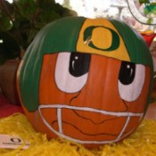 Oregon Ducks PumpkinThis is the pumpkin I painted with acrylic paints for my son this year, he is a huge fan of the University of Oregon football team, so he took it to a tail gate party in November.
