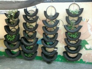 I have an entire garden plan of tires. Some cut into designer planters. Surround the "tire garden" with a small garden picket fencing to keep neighbors from seeing it. Just search the internet for "gardening in old tires" for numerous ideas and photos.