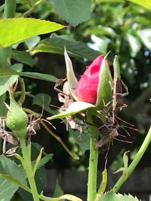 Or, as a last resort, I put on my garden gloves, crush the little buggers with my fingers (yuk!), then top the roses off with the homemade spray.