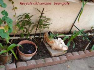 I have a favorite "pot"! I used an old toilet -- drilled holes in the bottom of the bowl for drainage and partially filled the bottom with broken pottery. Using potting soil, I filled the bowl and the tank to receive the begonias (in the bowl) and airplane plants (in the tank). I live in a "plush" neighborhood and I don't think the deed restriction committee would appreciate my "pot" in the front yard, so I have it in a small garden by my back door!! Makes me giggle!!