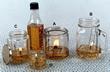 a jar with a cotton wick, piece of pumice stone (they float) and