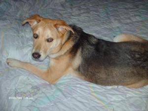 I've never been able to identify some other dogs that look this similar to mine! My 8 month old puppy Avila comes from a rescue litter that told us she was probably part golden retriever and part Australian Shepherd or German Shepherd. We aren't sure what to believe, she doesn't have a fluffy long coat, it's coarse and soft and she sheds a lot. Her coloring looks just like Levi and that of a German Shepherd. But, she is small, probably around 35 pounds with small paws, floppy ears that alternate sticking up once in a while, and a curved up tail. She also has a mottled tongue, pink nose, and medium brown eyes. :)