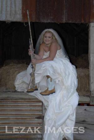The grooms cake was a 2tiered camouflage *airbrushed* marbled cake and the topper was a sculptor I got at Hobby Lobby of 2 ducks kinna cuddling! TOO CUTE! And of course my bridal portraits were me in the barn *my great-grandpa's where we got married* with my boots and gun! Hope that helps for your decorations...try this for a cake www.sugarnspicebakery.com/images/Camo12.jpg or justcamousa.com That is where I got the paper for our invitations!