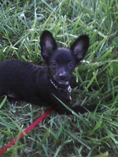 This is Lexi, she came to us the quite literally the size of a child's juice box! She has been AWESOME for our family. She is great with my two children, we call her "catdog" because she always wants to be in the window sill basking in the sun. She is really smart! I was surprised how easily she has been to train. When we bought her she was only 4 weeks unfortunately , the vet said she had not been weened and weighed less than a half a lb. We bottle fed her formula until she was about 7 weeks which was fun I must admit. There were only two pups where she came from but now we wish we had bought her brother too. To us she was a rescue, the "breeder" didn't have her in the best conditions, she instantly settled in to being our spoiled baby girl the minute we got her home.