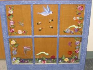 I painted a wooden six window pane from the 40's using the One Stroke Painting technique. I have placed this on one of my walls without a window in the room.