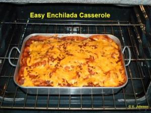 Drip each tortilla in the warm sauce and layer in a casserole dish, then meat, onions, beans (I use bean and bacon soup, no water added or kidney beans) cheese, olives, chilies, another layer of sauce dipped tortillas. Layer meat, cheese, etc, ending with top layer of tortillas, spread some warm sauce on top then, add cheese.