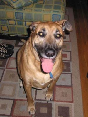 I am so missing my best friend "Cleo". When I saw the picture of your dog, it made me very happy! I walked Cleo nearly every day from 10 weeks on...that's why she lived such a long and happy life! She never got the hip problems that so many larger breeds have -- and she could put both of her legs forward toward her head (double-jointed?)