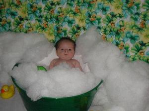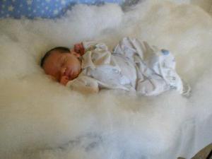 Great photo! I have had fun taking shots of my grandson, also. Don't forget props. Something as simple as a bag of cotton filling for pillows can make interesting effects.