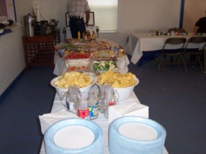 I have posted a picture of the buffet line & I think they fit in just fine. This party was way out in the country in a little country church fellowship hall. Thanks for the input~