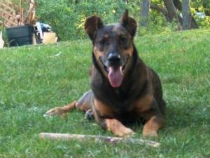 Miss Mandy loves to run through the woods of Germany, seeing and sniffing everything she can get her pretty little paws on. After that, she must have her nap while she snores louder than my husband. Miss Mandy loves to make people laugh! :o) Miss Mandy is a 4 year old Doberman, German Shepherd mix. We got our little girl from an animal shelter.