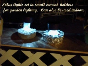 PS: One night when the power went out my son came home & grabbed one of the solar garden stakes to find his way in. Though not that strong I thought that was pretty clever in a pinch.