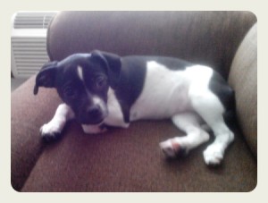 Awww. he is so adorable! I have a Rat Terrier/JRT mix too named Zippy, who was also a rescue! They are the best little dogs! I know Toby is bringing much joy to your lives!