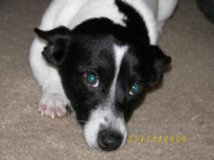 Toby is a 10 week old Jack Russell Terrier/Rat Terrier mix. We rescued him from the animal shelter. He was getting ready to go to puppy rescue that same day. He loves to play with and bother our 65lb Black Lab, "Missy". He loves to ride. He also loves to watch our grandson play baseball.
