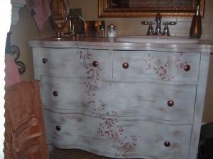 I painted knobs in my bathroom and they are holding up well. I think I primed them first with Zinser 123 and then spray painted them an antique copper. I think you can see the effect from my vanity in this picture.