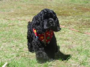 You have the same problem as we do with taking pictures of a black dog. The eyes show up great but the rest of the body is just black. Whereas the father of Seamus is a blond cocker and all the hair shows up nicely in a picture. We bred Lady to a blond cocker and got a whole mix of colors, all solid colors, none party colored. She had puppies whose colors were blond, almost white, black and blond with white markings. How many litter mates did Seamus have?