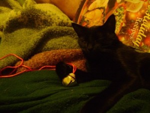 We're fostering a cat over winter and he likes to supervise the crochet too:) He never goes after the yarn, he just likes to be there to watch, and nap on the growing work, lol!