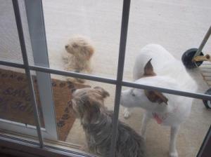 We have 3 dogs: Duncan, a westie that was a breeder male for a puppy mill. He was rescued 5 years ago and has developed into quite a little plucky personality. Then there is a bichon named Fozzie Bear who was rescued 3 years ago after being tied to a tree with a ski rope for numerous years. He is old- we could not tell how old because his health was so bad. He is also deaf because of untreated ear infections, has cataracts and sometimes hip problems but we love and protect him fiercely and he is just a goofy, funny guy with a huge heart. The last is a bichon named Bella, although we call her BooBoo. She was given to us because her owner had health problems and needed to get rid of her. We got her about 6 months ago and she is a very spoiled princess already and thinks that everyone needs to love a dog all the time. We spoil them all as much as possible and take them everywhere unless it is just too hot to be left in the car. They get to go to Wendy's for chicken nuggets!! I swear they can read the sign and they know how to get there.