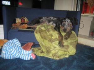 I have a Catahoula Leopard dog name Cloe. She is 11 months old and was about 5 months old when we got her. We got her from a rescue group on line called Broken Down Dogs. She comes from Louisiana and is used down there for herding cattle and hunting wild boar. We had to put down our Greyhound mix of 17yrs last year and I thought I could never have a dog again because my heart was so broken. Well Cloe has more than filled my heart and I don't know what I would do without her. She is an in your face kind of a dog and you always know she is there. I did alot of reading on the breed and must reestablish my self as pack leader in a loving respectful way constantly. She rewards me with unwavering love and affection just waiting to see what I want her to do. And yes she has on Blue eye and one Brown eye. I am just so in love.