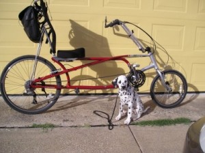Nice to hear from another recumbent rider! I ride as much as I can, but the drivers here have no respect for bikes and the city doesn't keep the sidewalks in decent order. I've uploaded a photo of my bike (EX Sports AX) and my best buddy. What kind of trike do you ride?