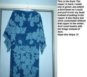 Memories! My mother made me one of these for Christmas in the early 70's. It was so comfortable and useful. I wore it after a tubby or on my way to and from the swimming pool.
