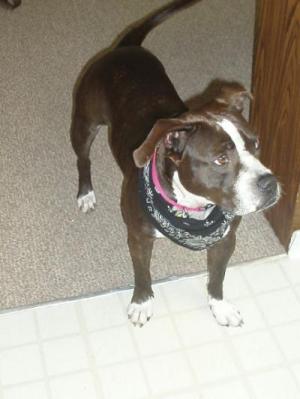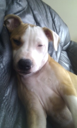 Mae is now a year old and is doing absolutely great! She is still such a sweet and loving dog - I'm sure she has pit in her now but as to whether she is full blooded or if she is mixed with something and what that something is, we will never know for sure.