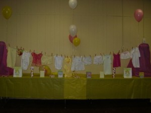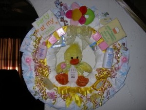I am giving my daughter-in-law a rubber duck baby shower in may, my thing is I need ideas on centerpieces, first I'd bought a bunch of plain baskets and then I put paper curlie things in them to kinda fill it up more, then I added things like diaper bag size baby powder, lotion, oil, wipes, a wipe holder, thermoeter, teether, thing for nose suction, ear section, finger nail clippers and baby file, medican spoon, med. droper, and such as that, but today I decided they didn't look that pretty so I'm looking for ideas on centerpieces, also any crafts we can do I've already made book markers, a framed poem each for mom and dad, I bought candy bar wrappers, if anyone knows of anything else please e-mail me at hickreenut@bledsoe.net, I would love to do lots of things but when you live off of less than $600.00 a month and I'm doing this all by myself I have to watch my budget, I also need cheap food ideas. Oh I also have a 3 layer diaper cake full of goodies in them as well.