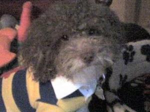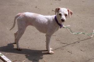 We just got a rescue doggie, Angel, from Wisconsin that was supposed to have been part Bichon and Poodle. After she was groomed she looks more like a Jack Russell Poodle, more on the Poodle side. Please give us a side view of Sam when you can. Angel has only been with us for 14 days. She loves to go outside so we leave two leads on her at all times, she likes to chew through them. The nylon rope she does not chew. She was so badly abused for the first two years of her life.