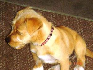Colby is 5 months old. He is a terrier mix. He was born with a hernia on the front of his chest and when he turned 5 months old we had it removed. He is just a joy to have around.