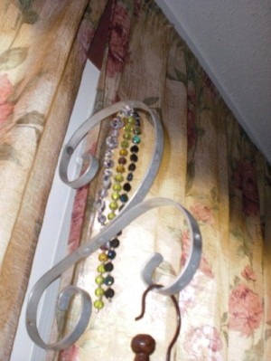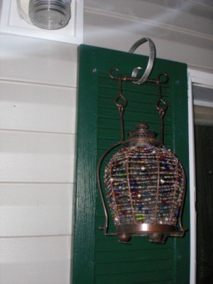 Tonight I snapped another pic of the broken screen door guard outside on my deck holding a beaded candle holder.