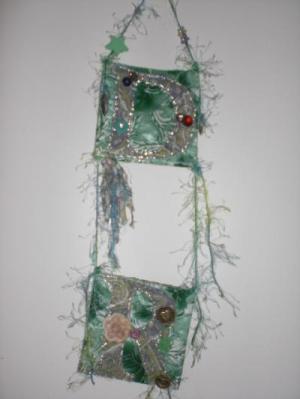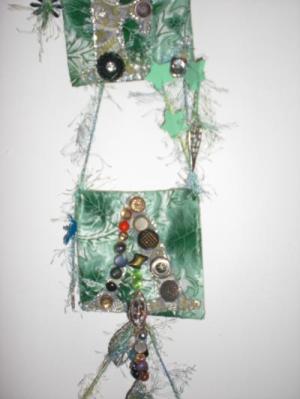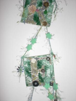 Fun yarn,beads, paper punched craft shapes,paper beads,handmade tassles,vintage buttons,handstiched leaves & glitter glue,glow-n-the-dark foam stars,metallic charms