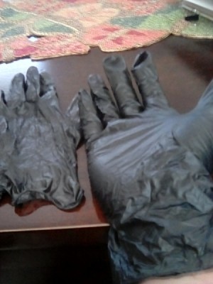 I use the disposable vinyl version of the gloves for meat prep in the kitchen, for bathroom chores, and for cleaning out the cat litter, but for everything else I wear a pair of reusable rubber gloves.
