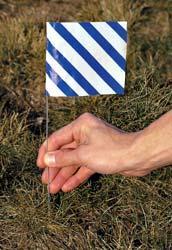 When my daughter takes the dog for a walk in our yard, she forgets where the messes are when she goes back out to clean up. I am thinking of markers made of something that won't blow away, yet is portable, easy to clean, bright, seen easily during cloudy days, sticks up above the grass. Suggestions?