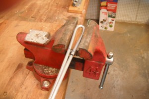So, all you need to make this bag holder is the aluminum rod, 4 clamps and a vise for bending or a friend that has a vise and can bend it for you.