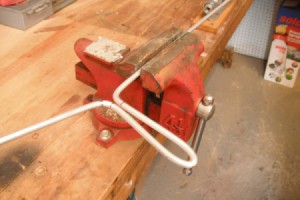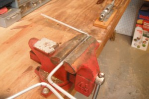The pictures show how to bend the rod using a vise. After making the first bend, which is the middle, you bend it together with your hands.