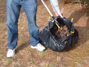 We have pine trees in our yard and picking up the pine cones is so easy with the use of this bag holder. With my reach extender and bag on the bag holder, I can fill a big trash bag with pine cones in just a few minutes. I take them down in the woods and empty the bag and keep it on the holder until the next time I have to pick up pine cones.
