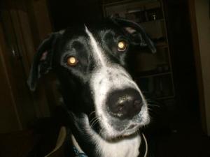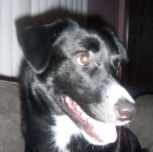 I have a 12 yr old dog who is also a lab/border collie X and she looks exactly like him only with no white patches
