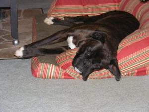 She loves to chase leaves, balls, bugs, anything that moves! She is a bundle of energy, except for when she crashes, like in this picture! She was only a few months old, and slept with my son's house shoe with a warm bottle in it.