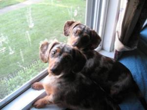 I have 2 mini doxies, 1.5 years old. They are chocolate dapples and are also sisters. They're great fun. I can't imagine not having them! Good luck with your new puppy.