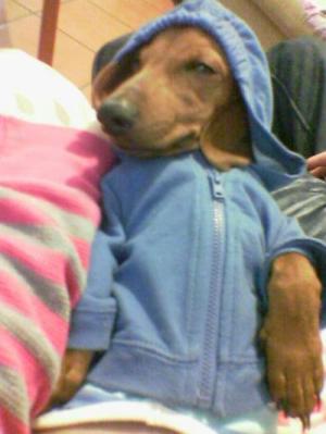 i have a mini dauscand she is a cutie like ures i think i spoil her to much but why not there dogs that s what ure suppose to do so go ahead and dress her up take her places kiss on her