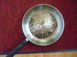 How do I remove the stain from a stainless steel fry pan? The burnt on food has been removed, but the stain is still there. An help would be appreciated.