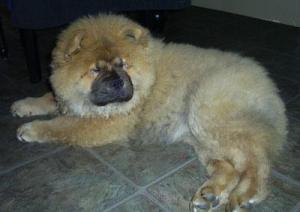 Cute. He looks just like my Golden Retriever /Chow mix. Does he have any black spots on his tongue?
