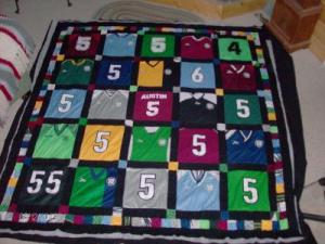 Looking for ideas into making my son a quilt with his hockey jerseys. Thanks.