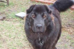 He is Black in colour Big paws with a tint off brown in his ears he nearly a year old he a big as my sheep dog also brown eyes short hair he meant to be a labrador retriever cross can you help me please