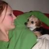 Maggie was very, very shy and withdrawn at first but after a few months of lots of love and care she became just like a pup. We had to train her just like a puppy because except for house training, she really didn't have any training for coming when called, sitting, lying down or any of the basic commands.