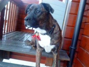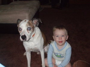 Bosswell is a beautifully pup, Boxer and Australian Shepperd, what a great mix. Lori
