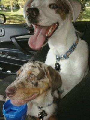 She bears all the qualities I desire in a canine companion. Her train-ability is outstanding, and having always had Boxers and other Bully breeds, this is a serious plus and reflects well on me, since my career is as a canine behavior and nutrition counselor : ) The other dog in the pic is her best friend, 9 year old Am. Staff "Oscar" a.k.a. "Big Pig". I'm so glad I found this thread, and many thanks for sharing!