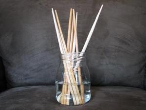 If they are porous and non-coated wood ones you could place them in a jar or vase and add diffuser oil to use them the same way as a reed diffuser. A jar or vase with a smaller opening at the top would be better because it would keep the diffuser oil from evaporating as quickly. Picture below is just an example to show you but I don't have any diffuser oil on hand so used water ;-) LOL ;-)